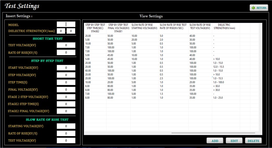 Software Screen - PC Based Di-Electric Voltage Breakdown Tester)